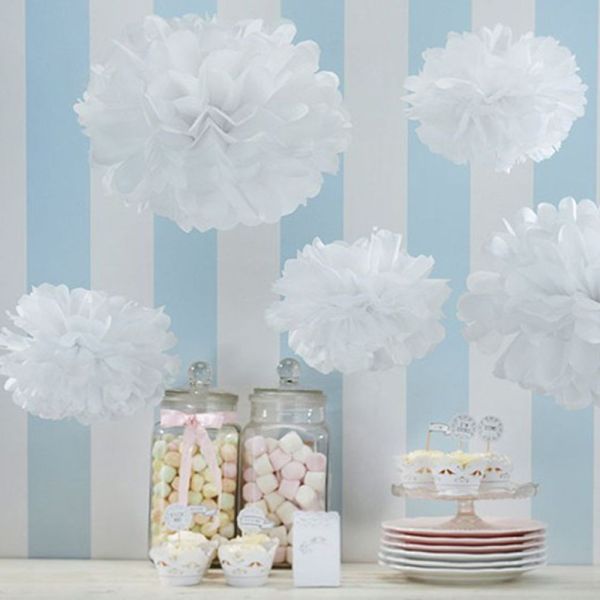 Pure White Color Tissue Paper Pom Pom for Wedding Party Decoate Images |